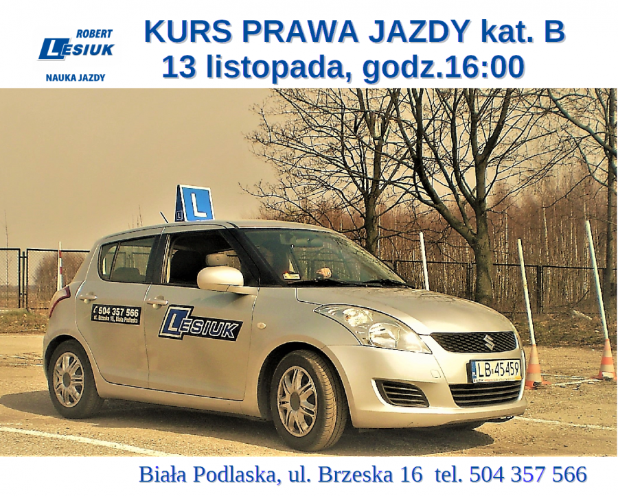 Kurs prawa jazdy kat.B - 13.11.2017, godz.16:00