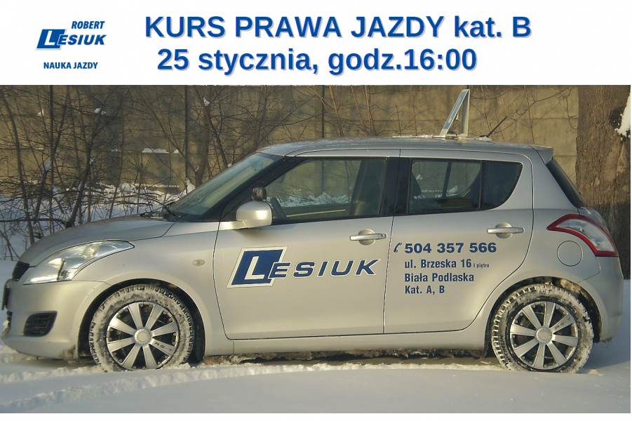 Kurs prawa jazdy kat.B - 25 stycznia, godz.16:00.